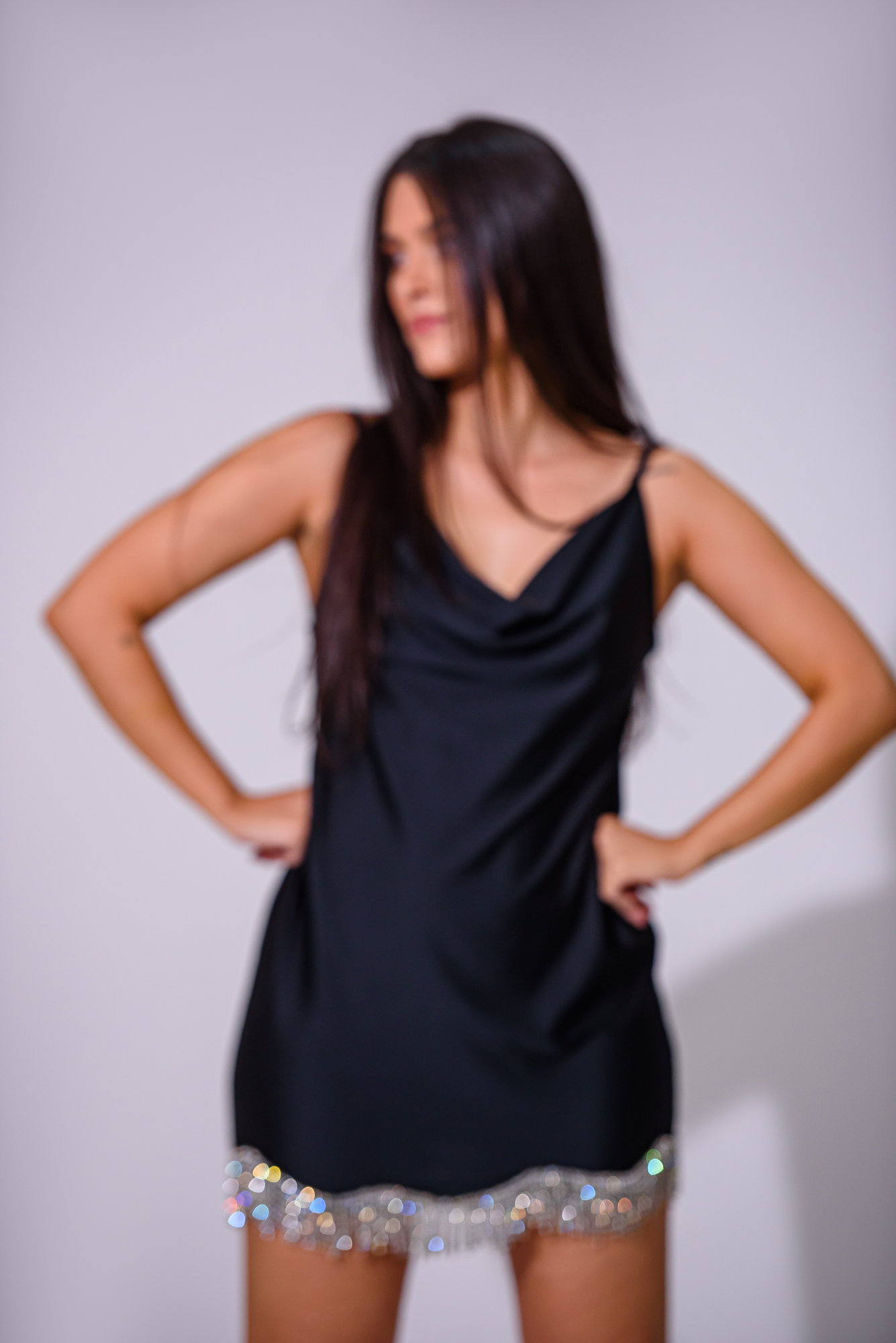 Dress com alças reguláveis, tecido lycra premiun cintilante.